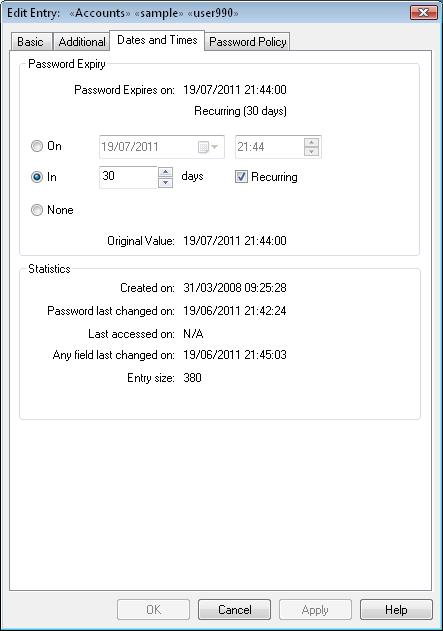 Username, passwords and groups together with the additional parameters are managed in 4 tabs: